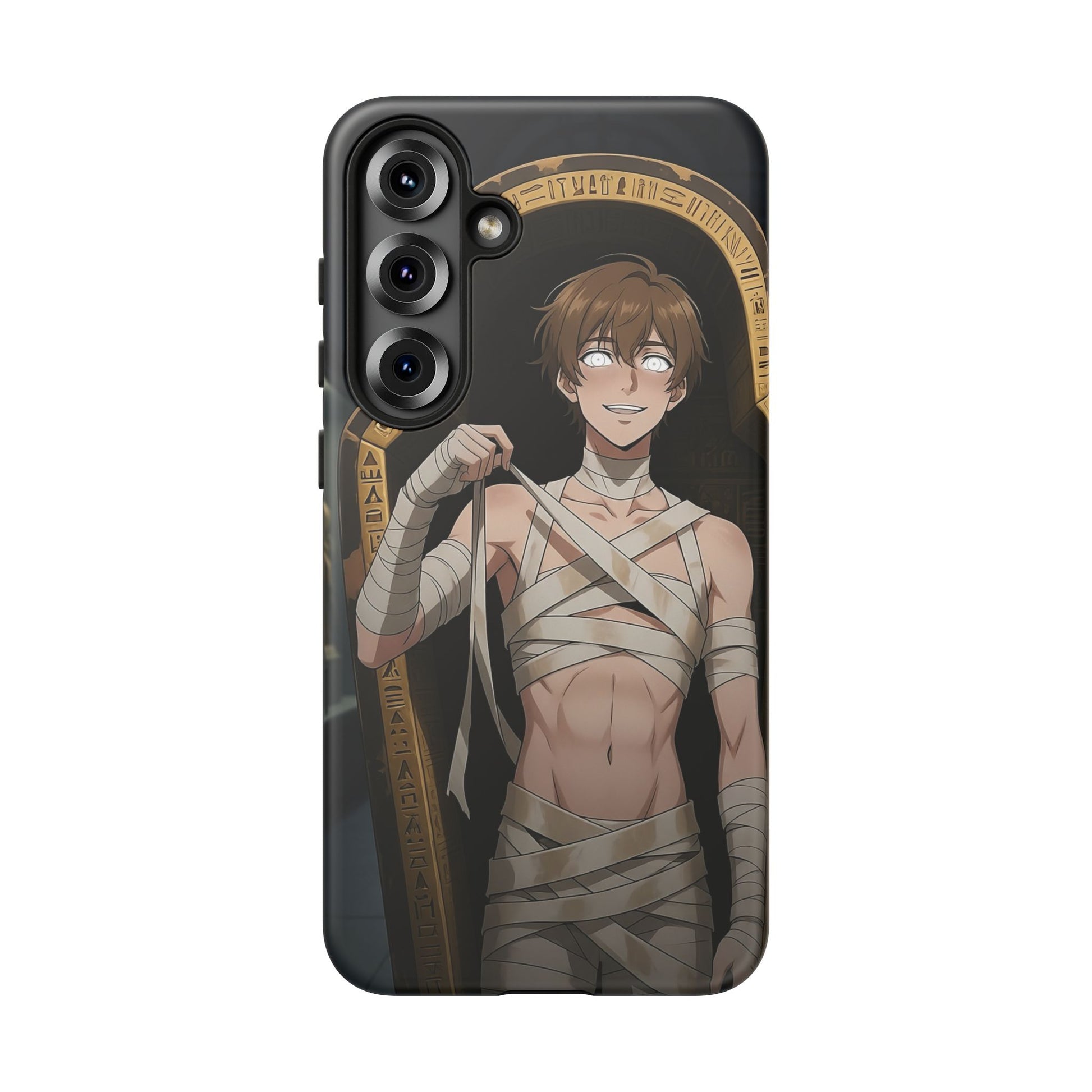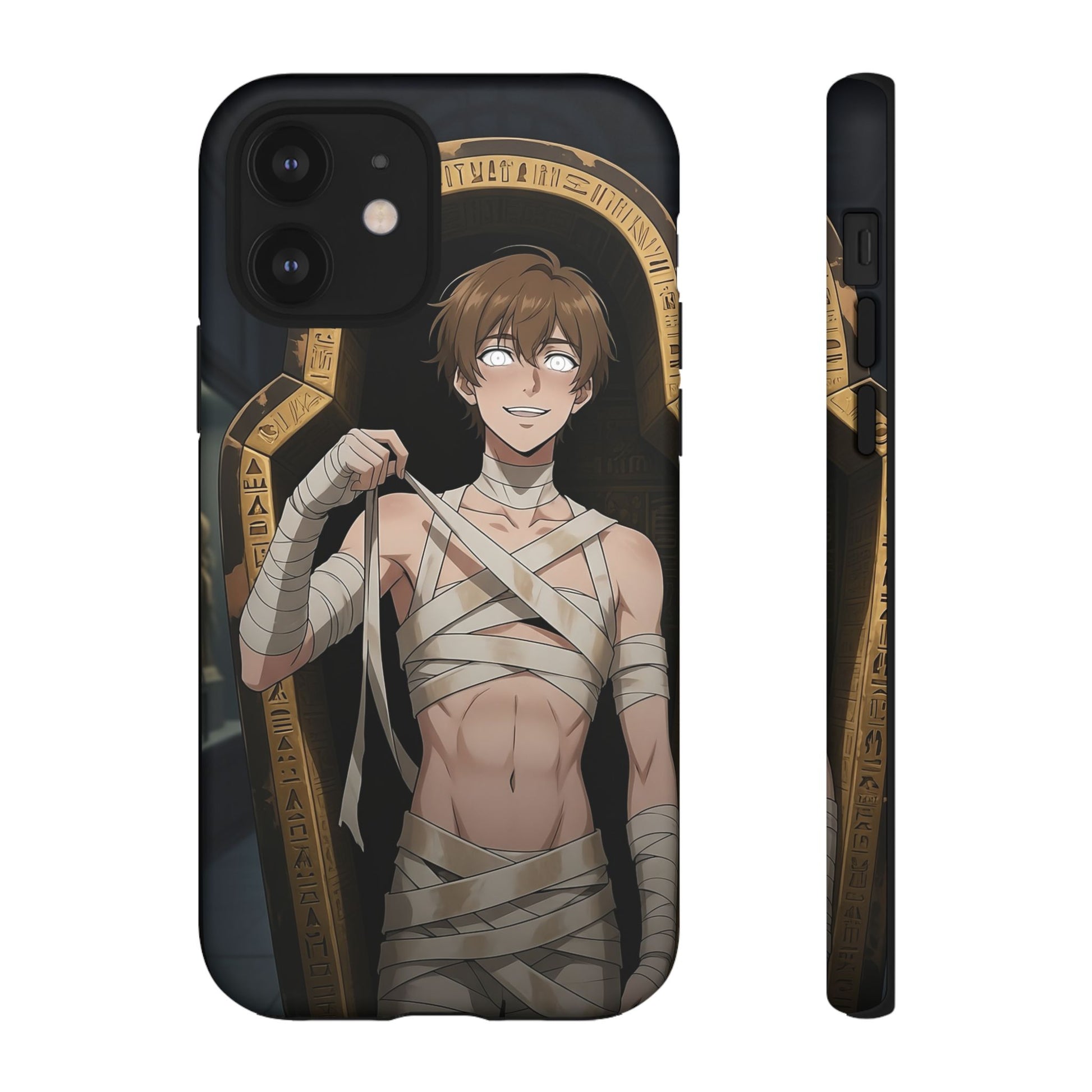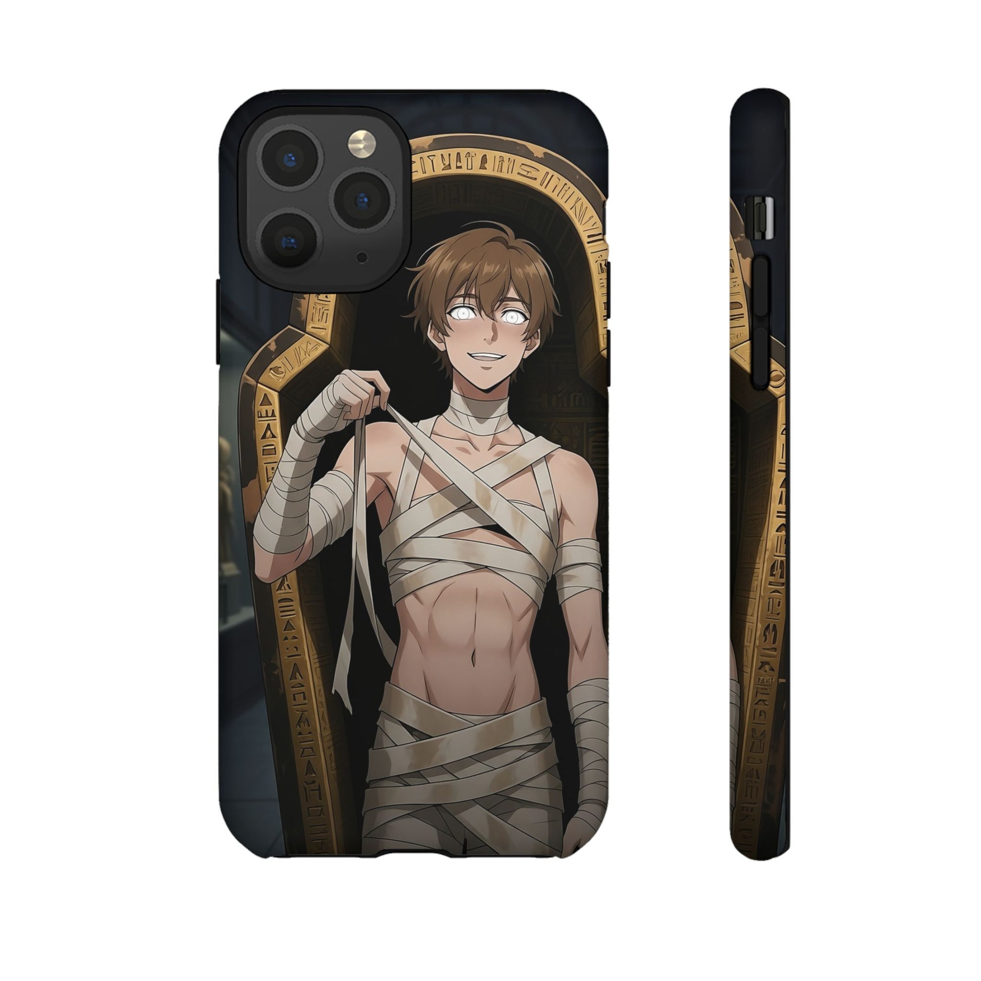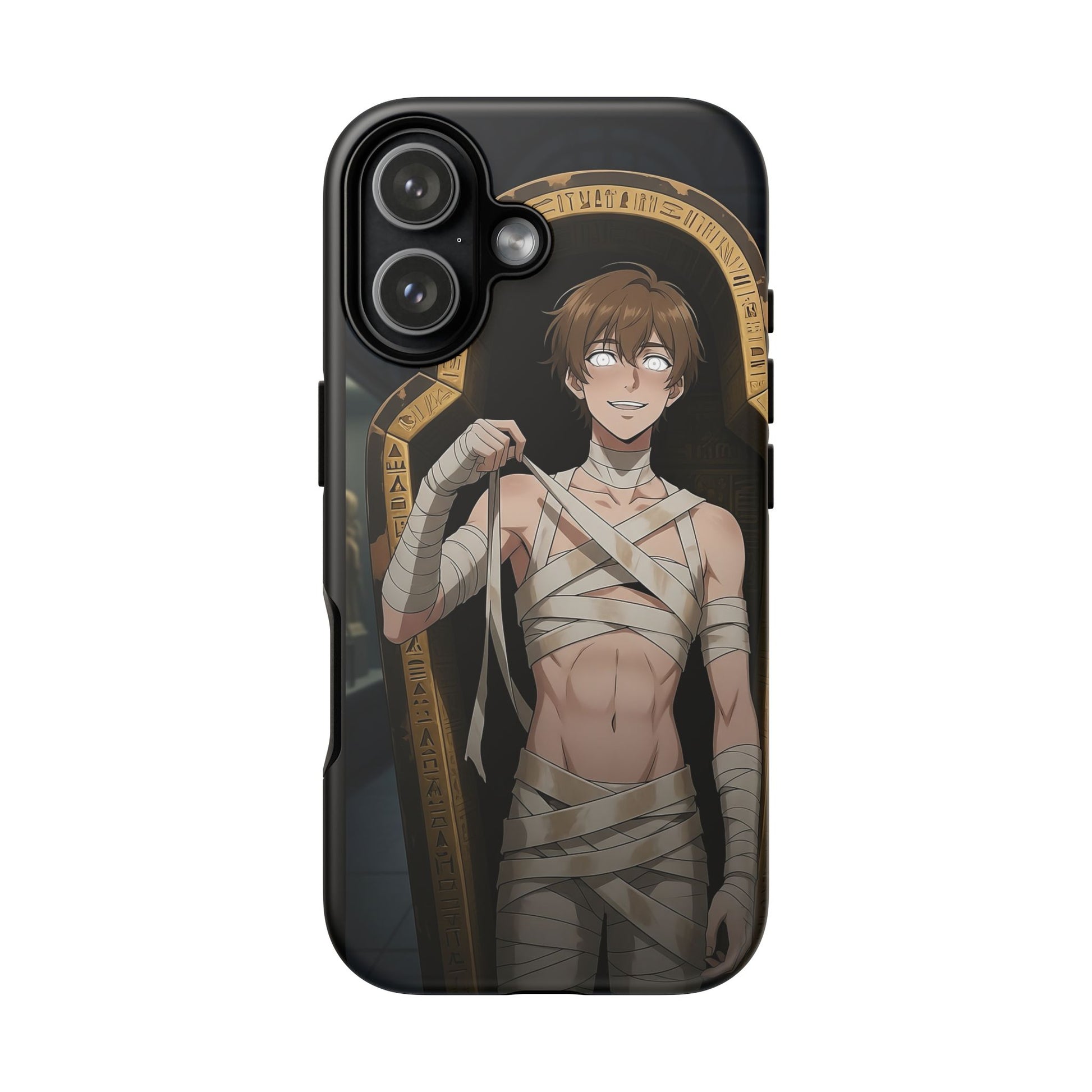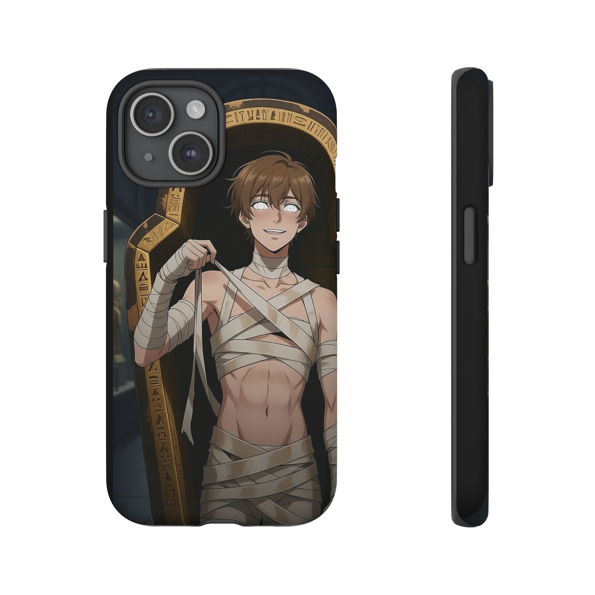 Drop protection with desert-prince drip. This gothic anime phone case stars Imhotep, our mummy heartthrob, wrapped in luxe bandages and serving “ancient royalty, still your type” energy. The full 3D wrap art covers the entire case in vivid, high-density color, so every angle hits like a panel from your favorite manga. Slim, grippy, and ready for daily chaos, it’s everyday armor for monster lovers of all genders who want their phone to look as dramatic as their playlist.