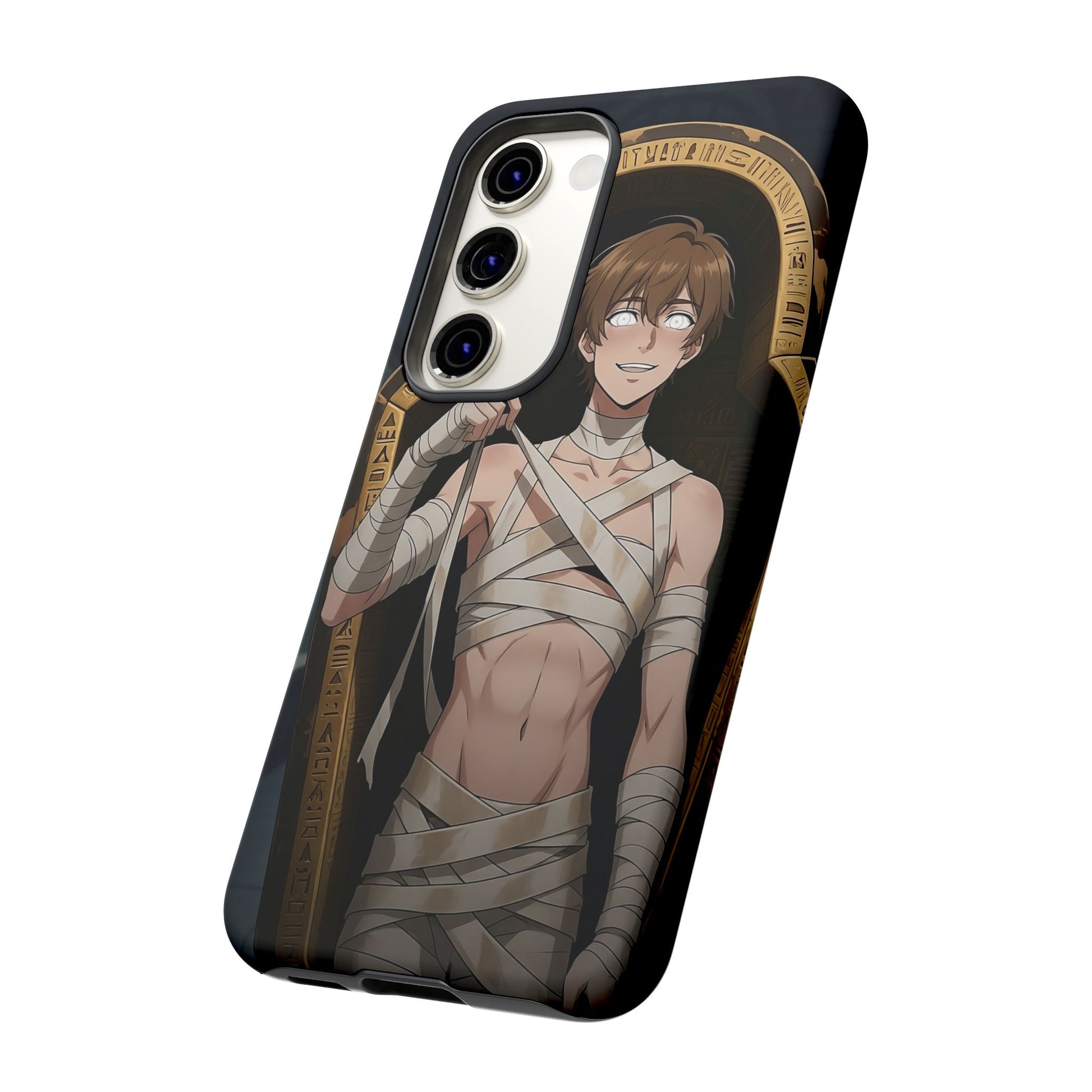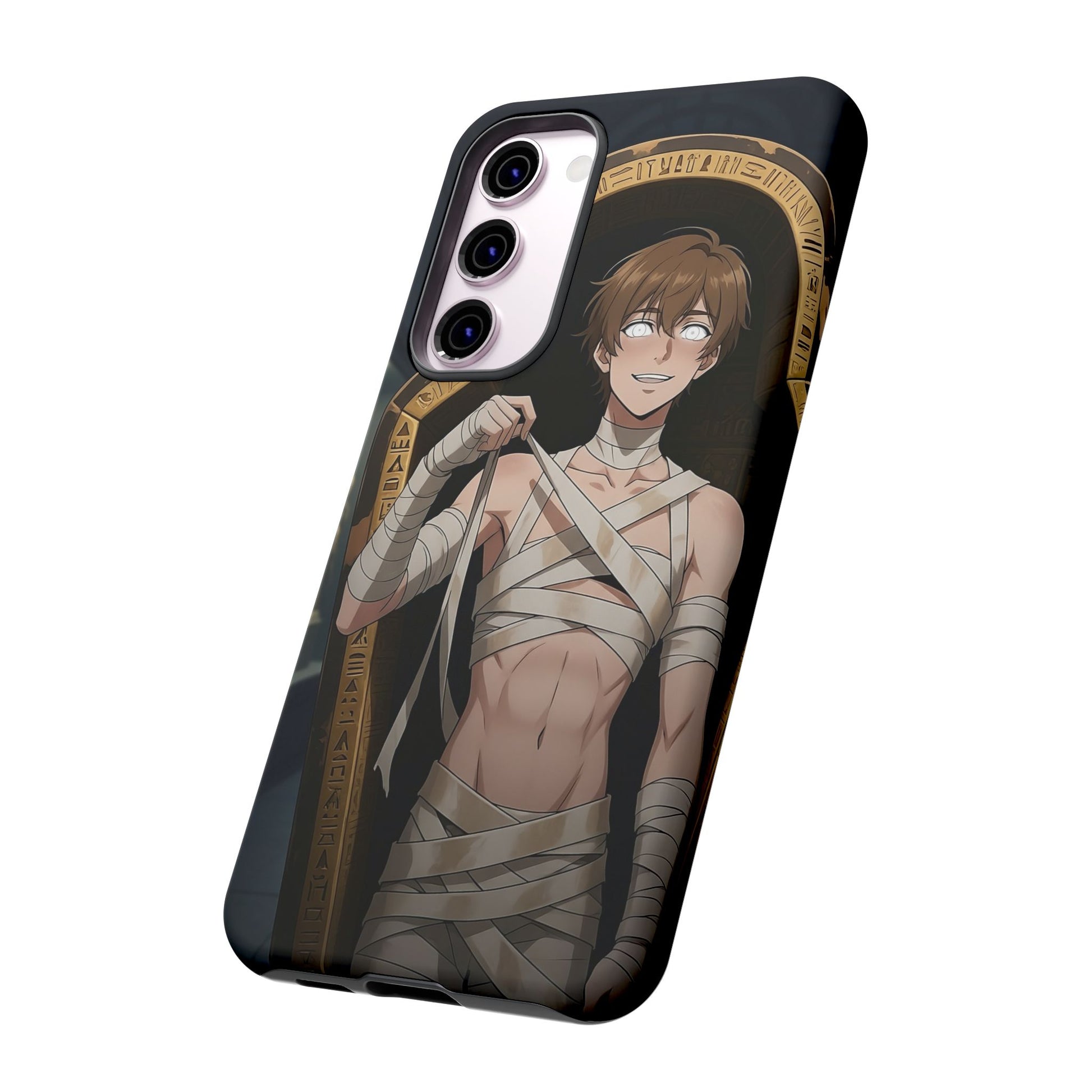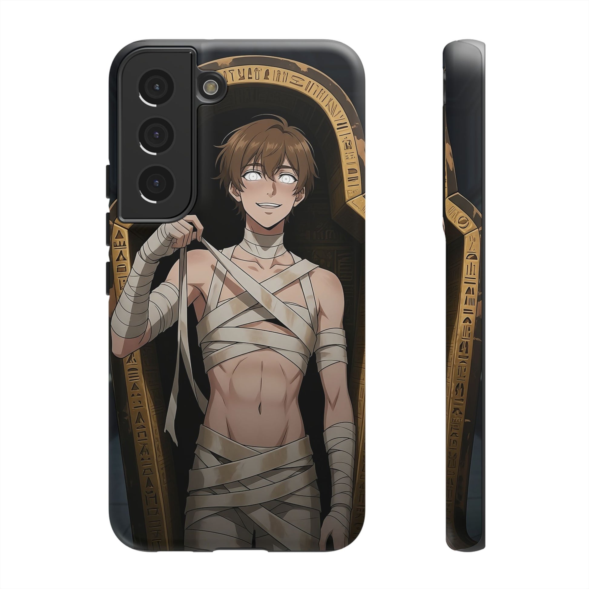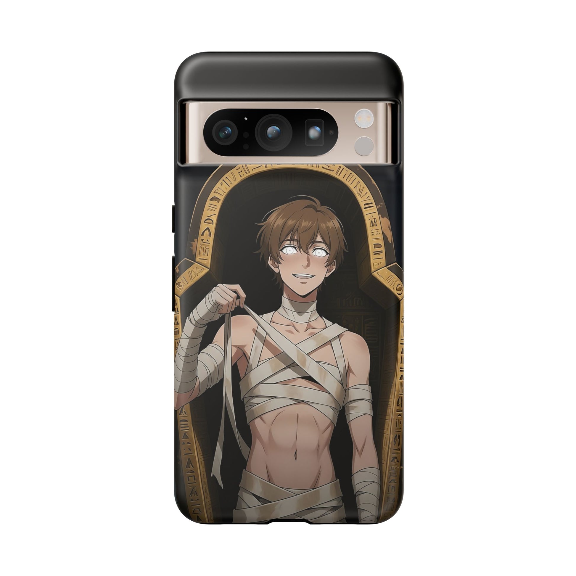 Drop protection with desert-prince drip. This gothic anime phone case stars Imhotep, our mummy heartthrob, wrapped in luxe bandages and serving “ancient royalty, still your type” energy. The full 3D wrap art covers the entire case in vivid, high-density color, so every angle hits like a panel from your favorite manga. Slim, grippy, and ready for daily chaos, it’s everyday armor for monster lovers of all genders who want their phone to look as dramatic as their playlist.