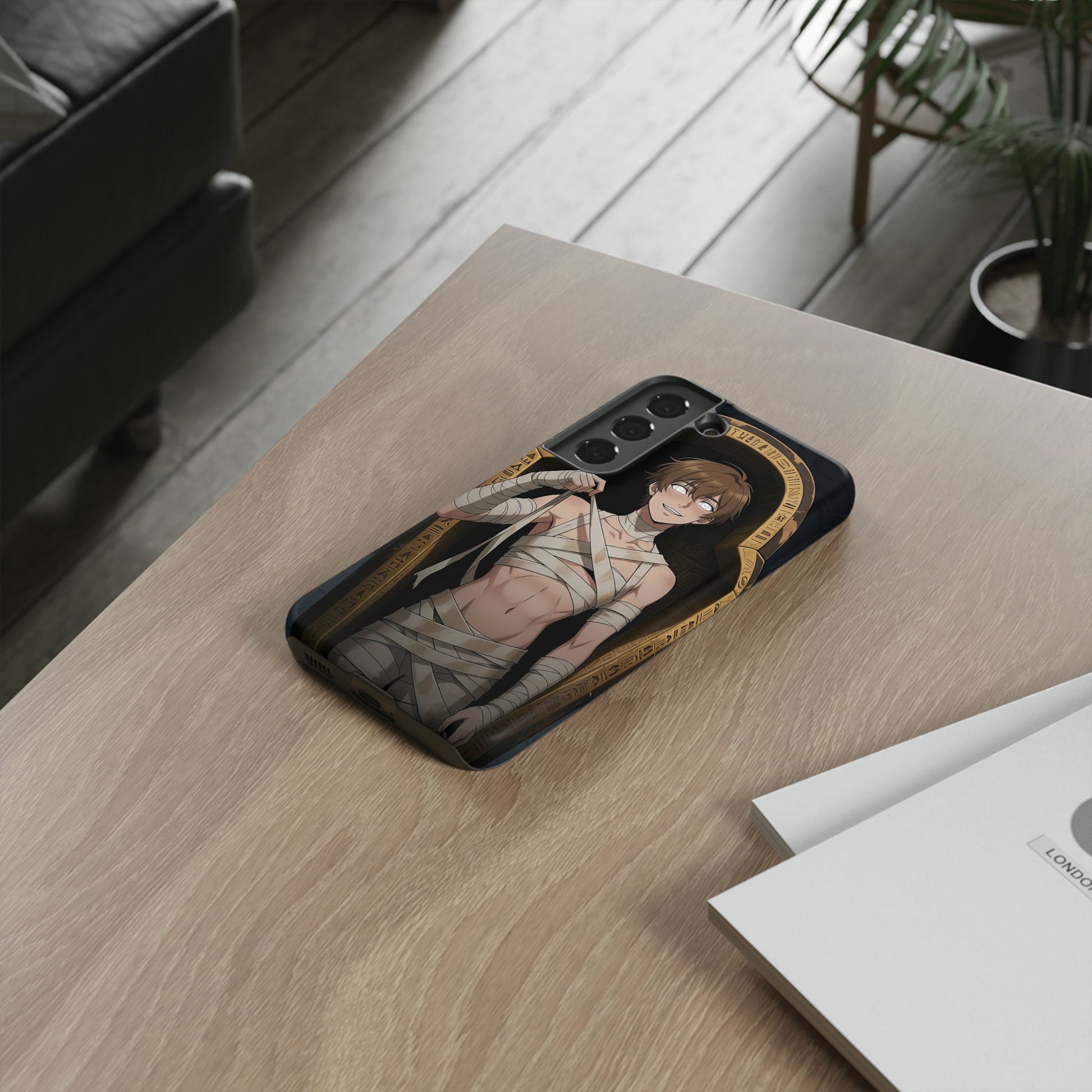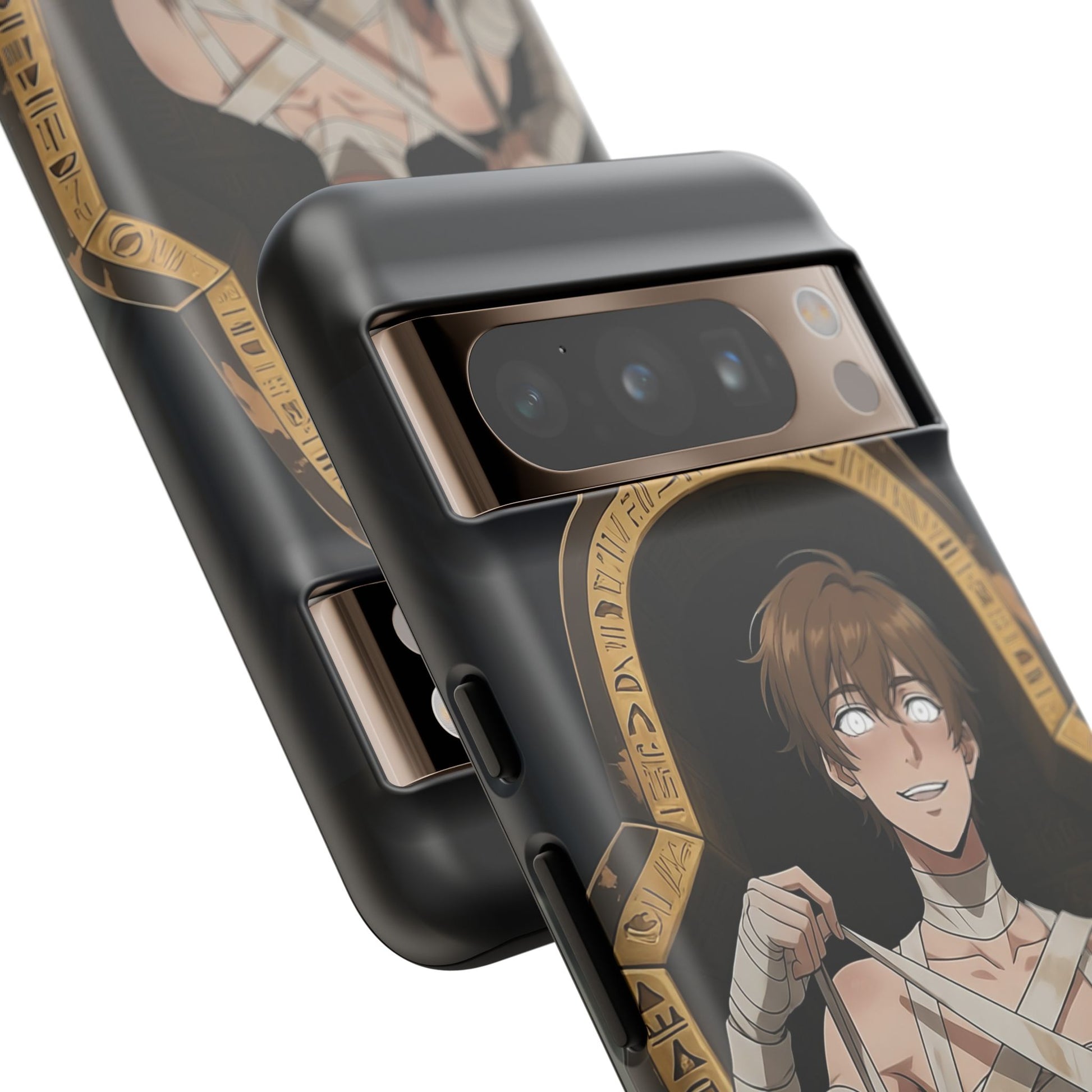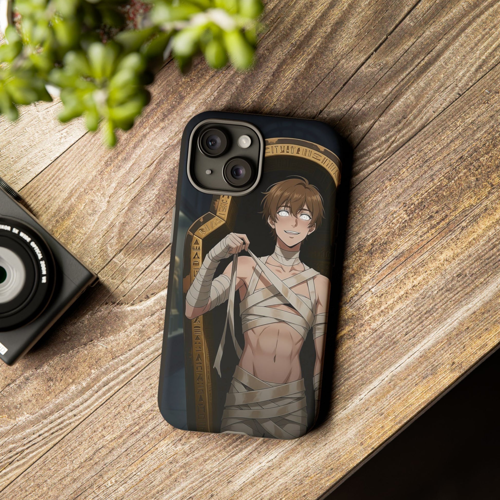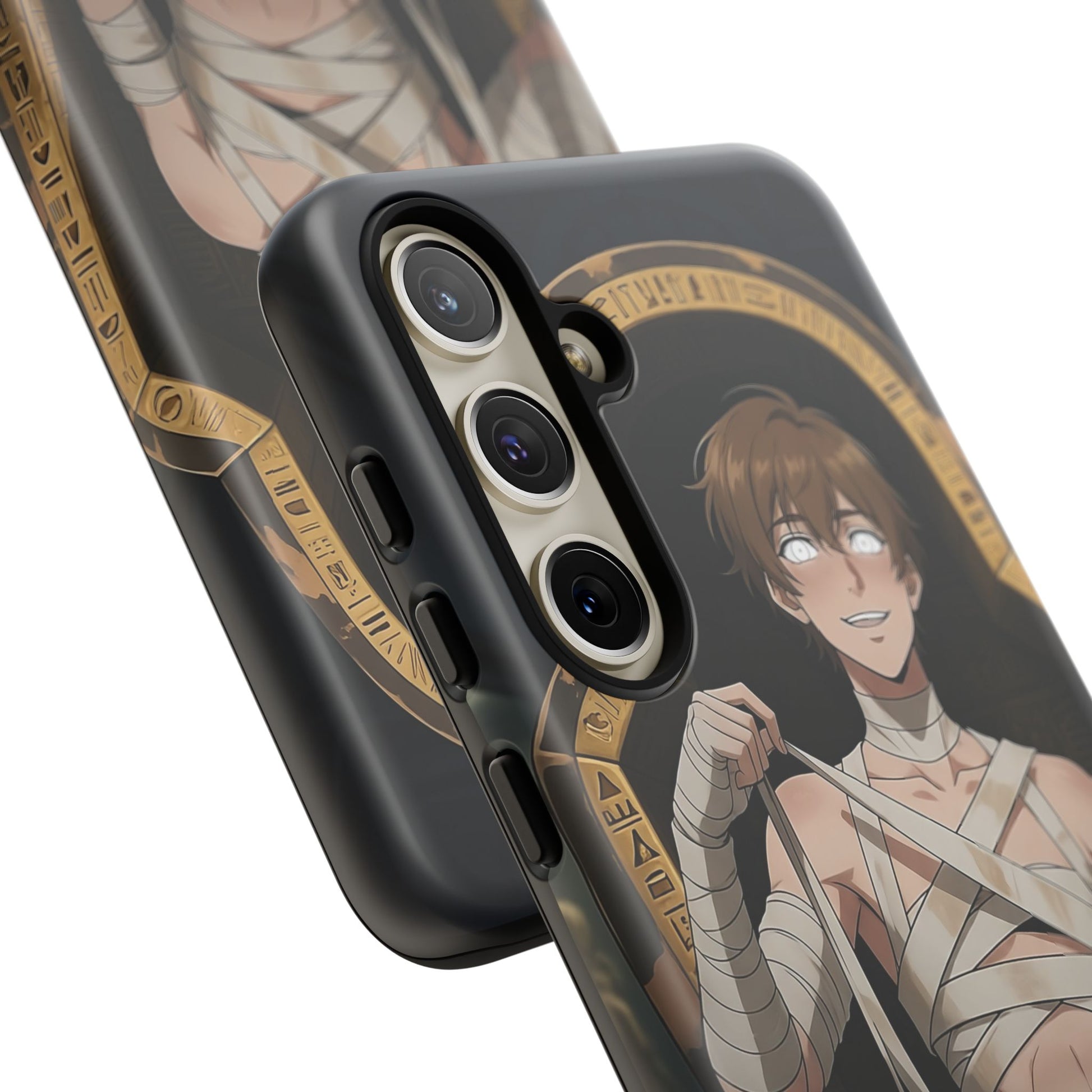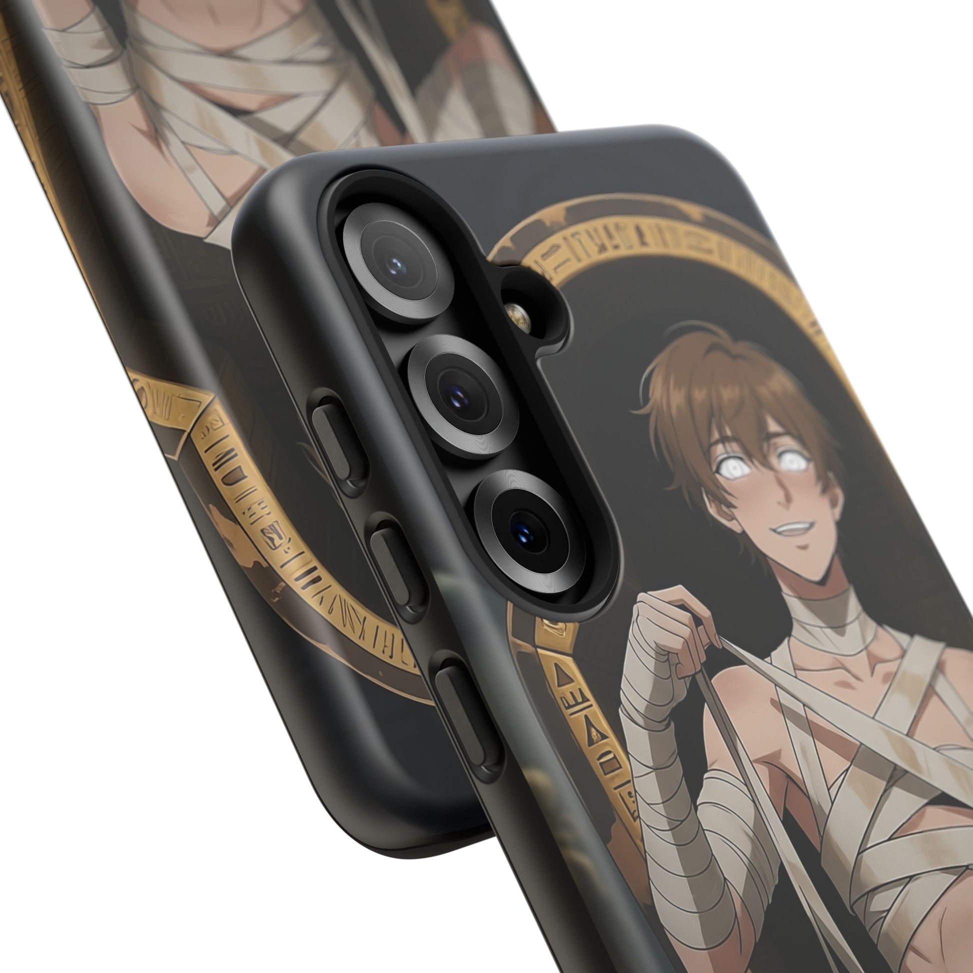Drop protection with desert-prince drip. This gothic anime phone case stars Imhotep, our mummy heartthrob, wrapped in luxe bandages and serving “ancient royalty, still your type” energy. The full 3D wrap art covers the entire case in vivid, high-density color, so every angle hits like a panel from your favorite manga. Slim, grippy, and ready for daily chaos, it’s everyday armor for monster lovers of all genders who want their phone to look as dramatic as their playlist.