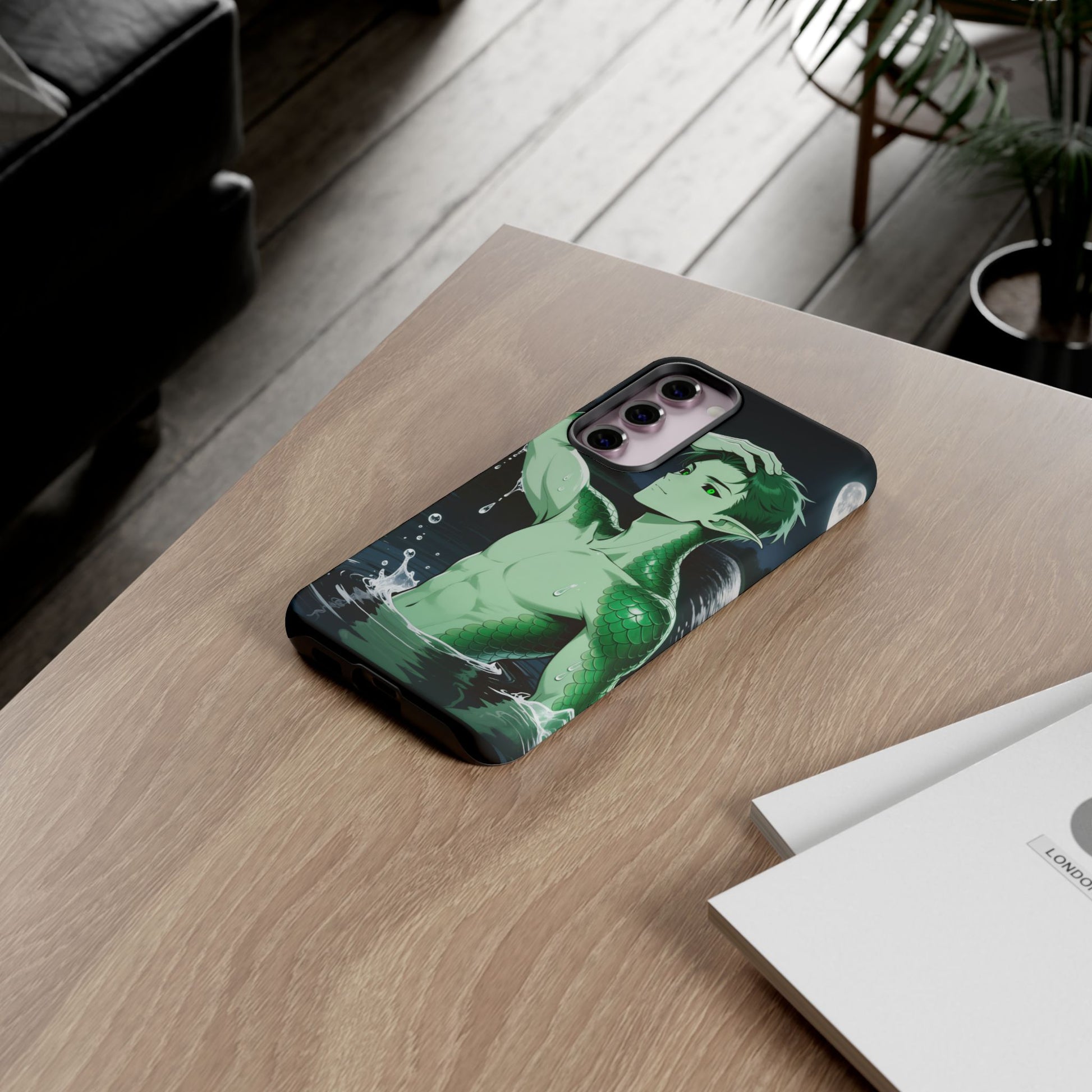 Pocket a splash of danger. This tough anime phone case stars Kel, our moonlit sea creature heart-throb—glossy scales, sharp jawline, and “I definitely dragged sailors to their doom” energy. The full 3D wrap art keeps your device looking impossibly pretty, while the shock-absorbing liner quietly handles the chaos of real life.