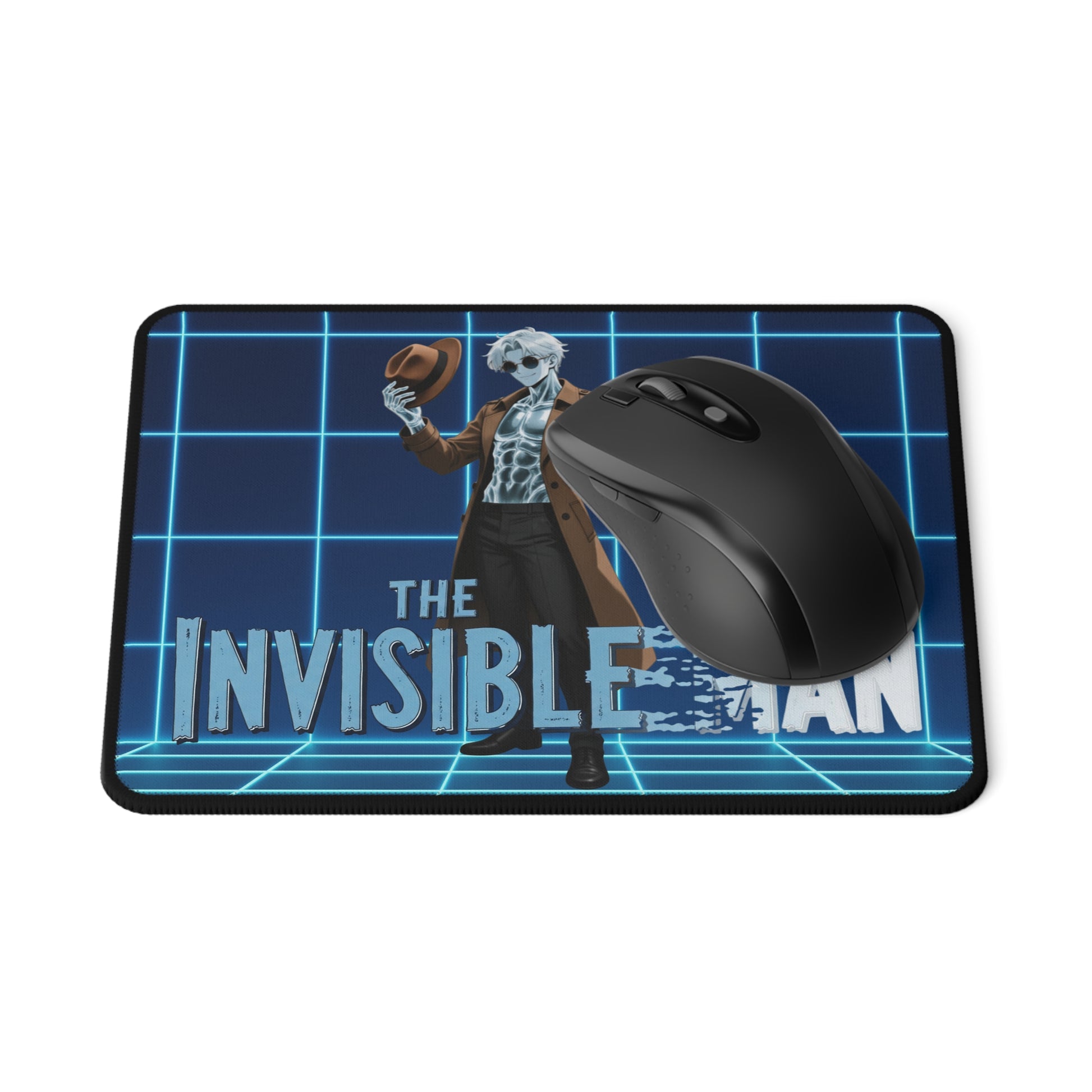 Aim true, haunt hard. This smooth gaming mousepad gives you fast, precise tracking while Theodore Marvel—our anime-style Invisible Man—keeps watch over your angles like a very pretty, very chaotic guardian spirit. Clean suit, glass-slick edges, and just enough menace to make every clutch moment feel like a lab experiment with your rank on the line.